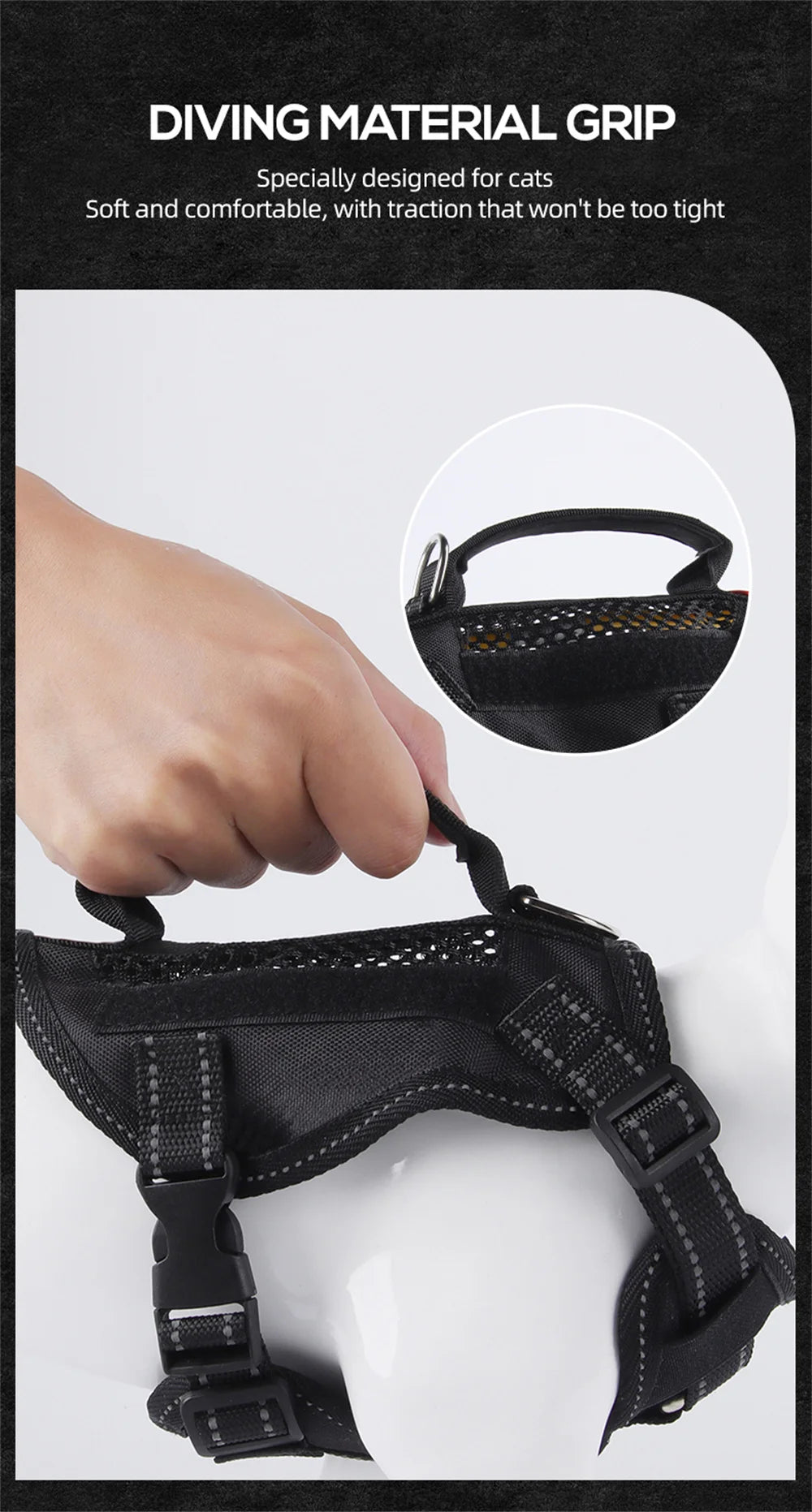 - Neck-Less Safety Silhouette: Unlike standard vests that can choke, our specialized design avoids the throat entirely. It redistributes tension across the chest and shoulders, ensuring your cat breathes easily while jumping or climbing.