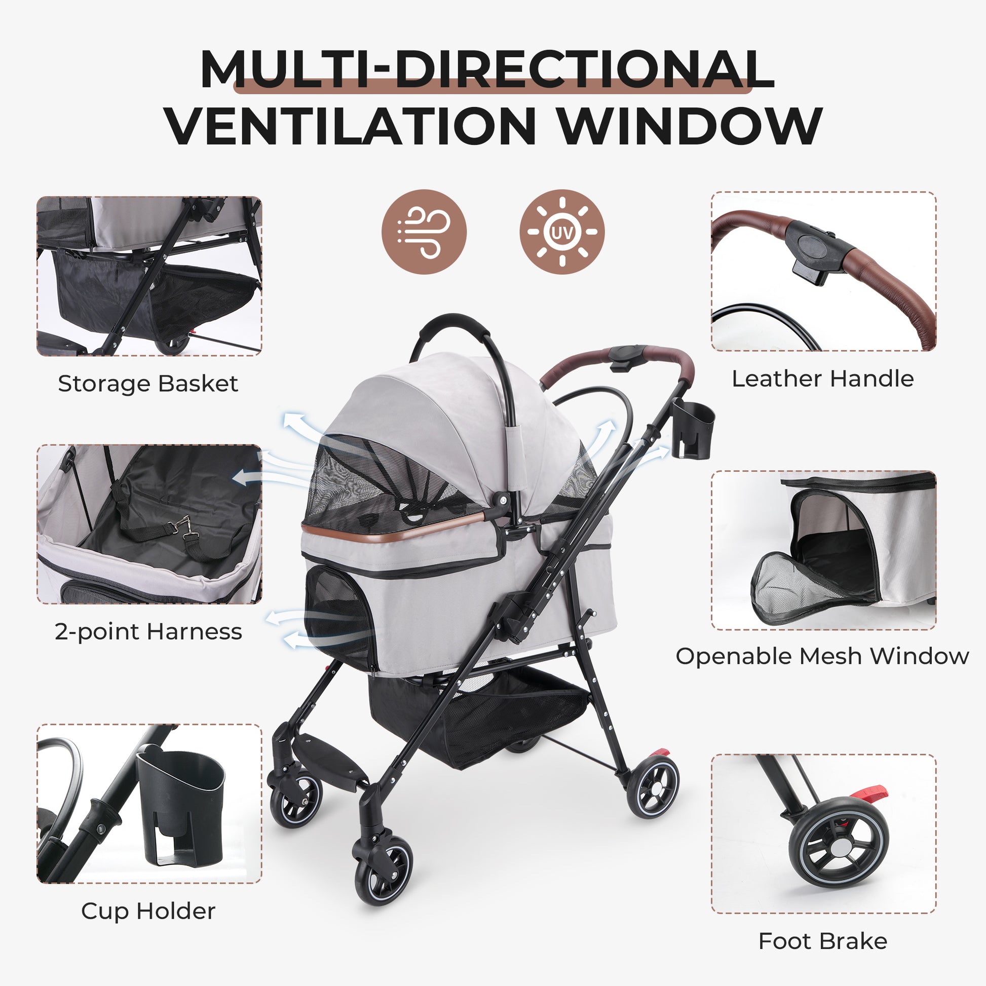 - Detachable Carrier System: The cabin basket can be removed from the frame in seconds, allowing you to carry your pet into hotels/homes or use it as a safety car seat during drives.